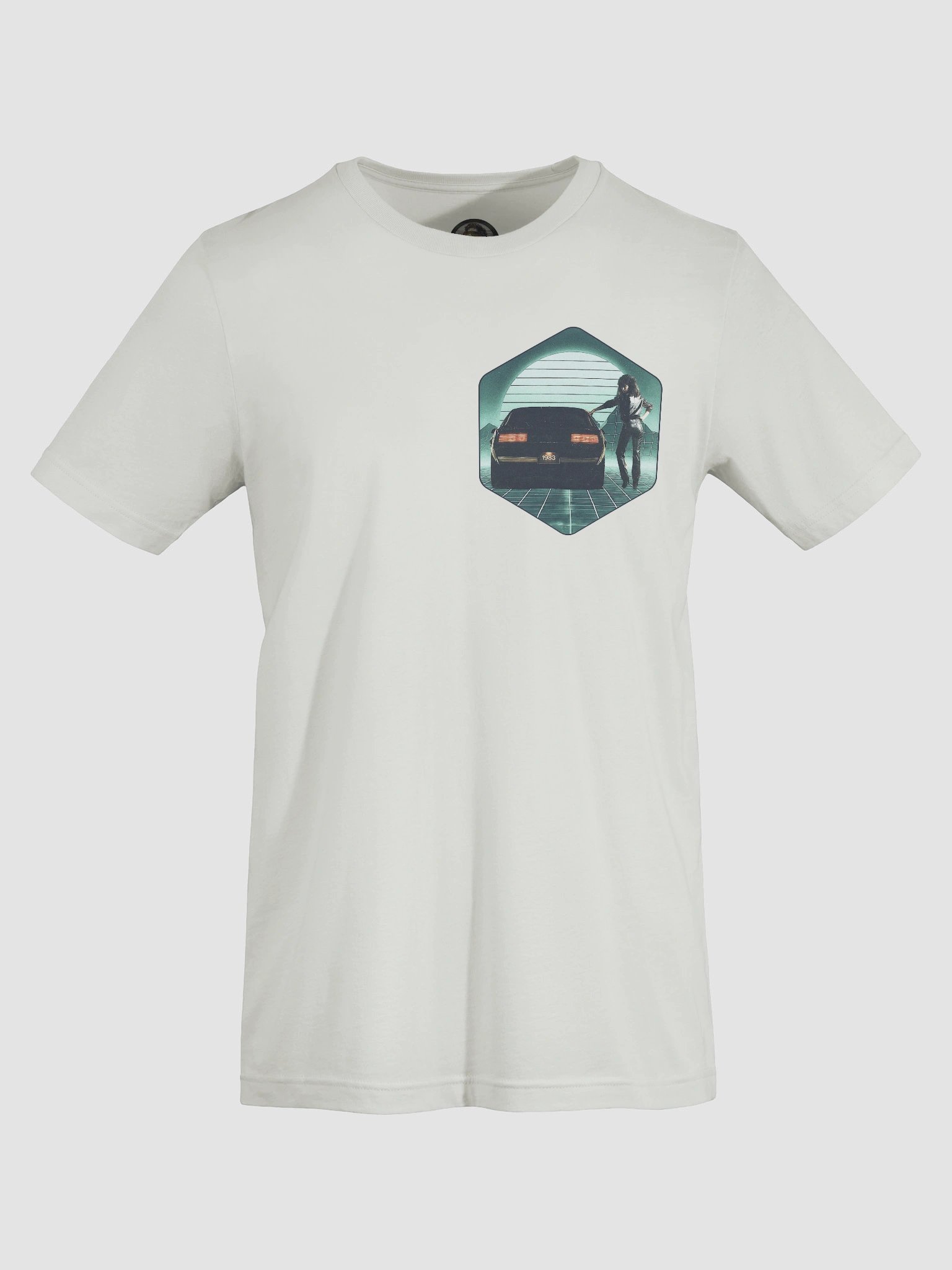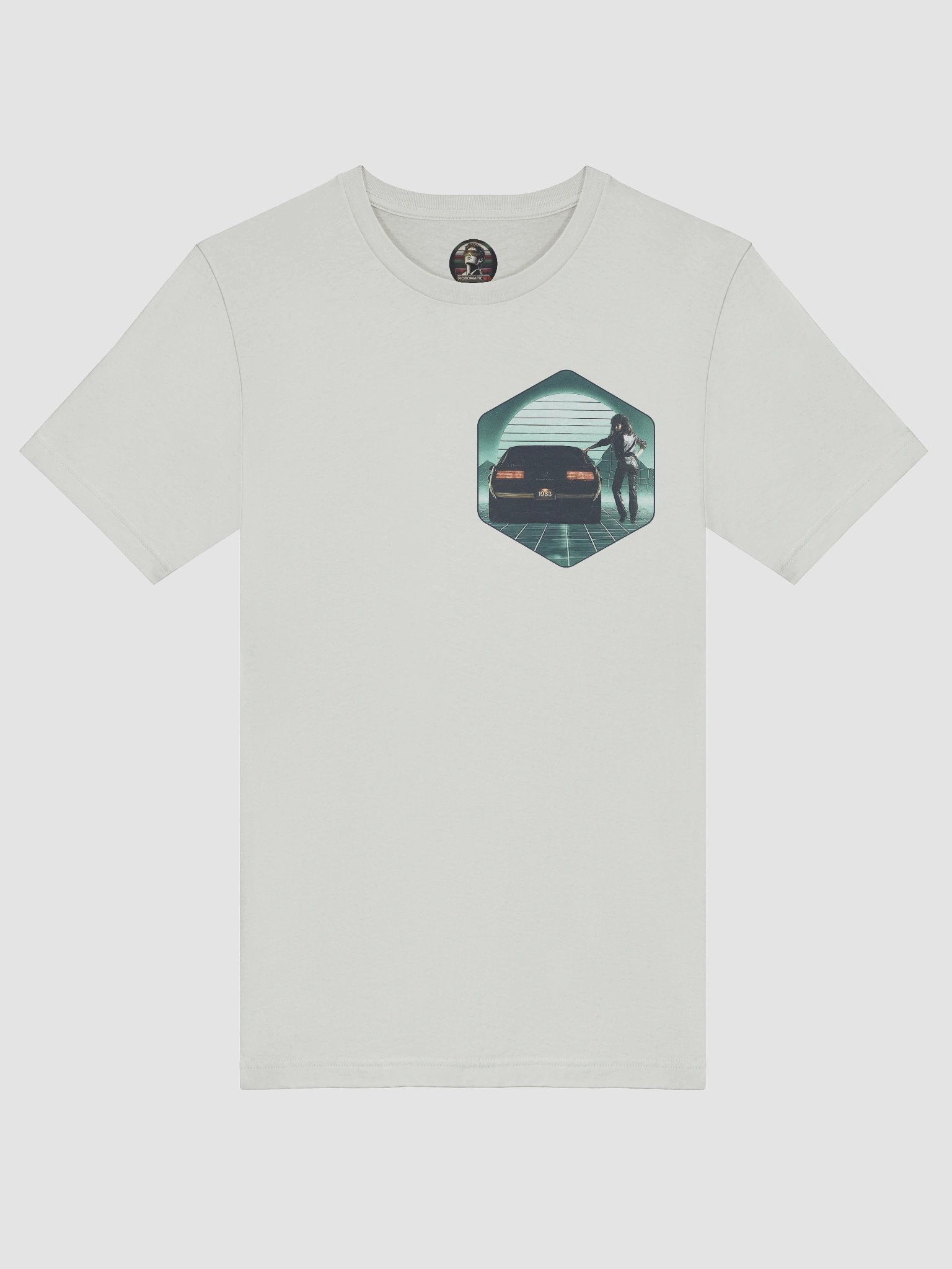 The picture in this T-shirt is a time capsule of 80's disco, capturing the decade’s essence with unparalleled style. The powerful presence of the Pontiac, paired with a beautiful model in a confident stance and enormous head of hair, epitomizes the era’s bold fashion and flair.